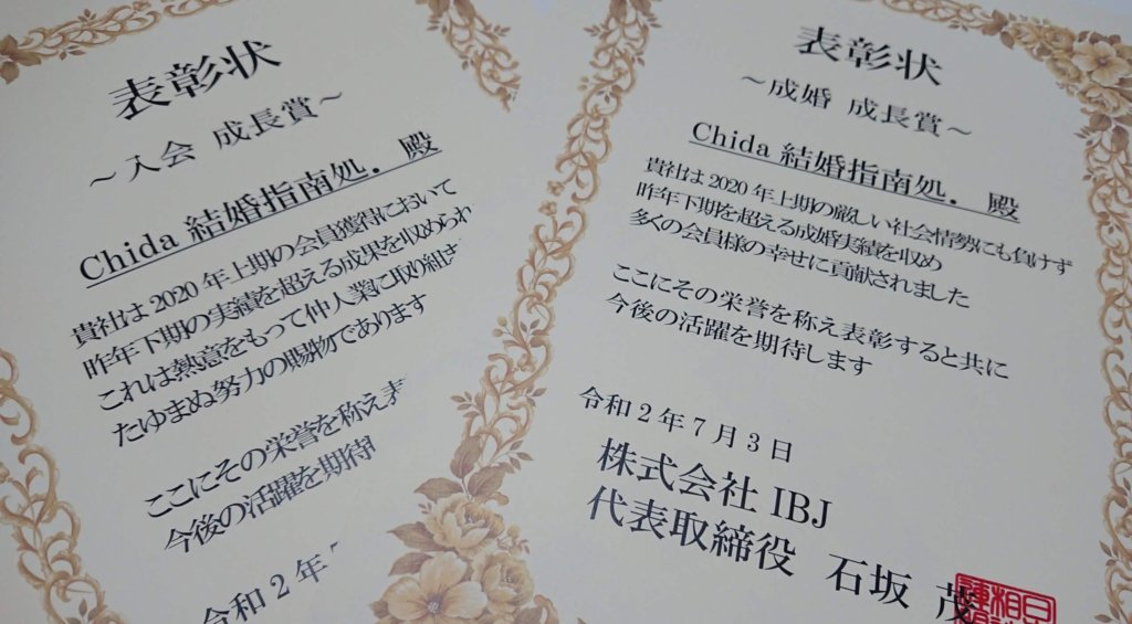 こんにちは。婚活アドバイザーの千田園子(ちだそのこ)です。 Chida結婚指南処.が加盟している連盟のIBJから表彰していただきました。 『成婚 成長賞』の「2020年上期の厳しい社会情景にも負けず…」のところに、思わずじ~ん。 新型コロナには振... -